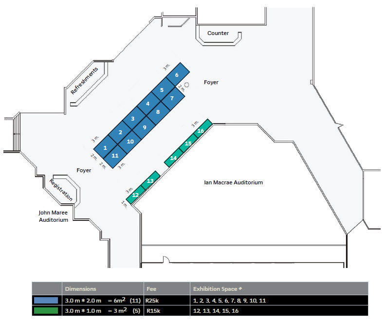 *One stand personal is included in the exhibition stand. There is a charge for additional stand personal (for catering purposes) (R2,400pp).